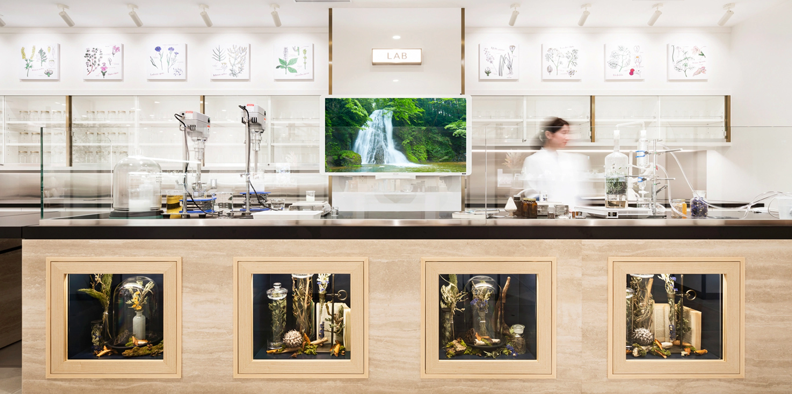 商業施設「ニュウマン横浜」(横浜市)に入る店舗「アルビオン フィロソフィ」内に位置するオープンラボ。