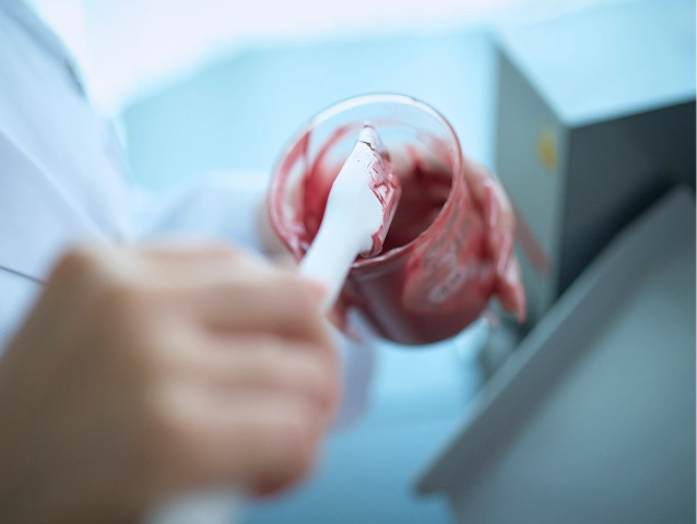 ファンデーション、化粧下地、口紅などの新しいメイク製品について、新製品開発や新規製剤技術の研究を実施しています。色やテクスチャの開発はもちろん、SPFやウォータープルーフなどの機能性の向上にも力を入れています。